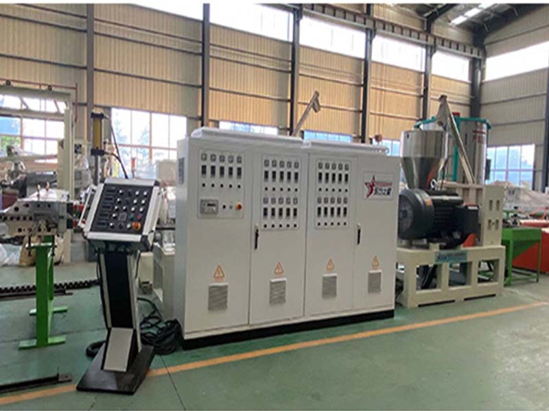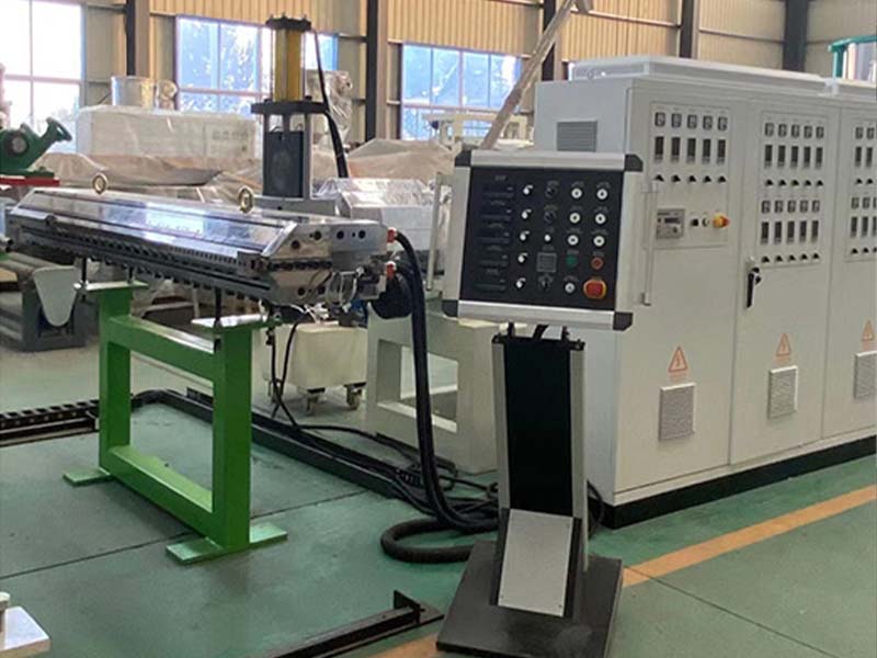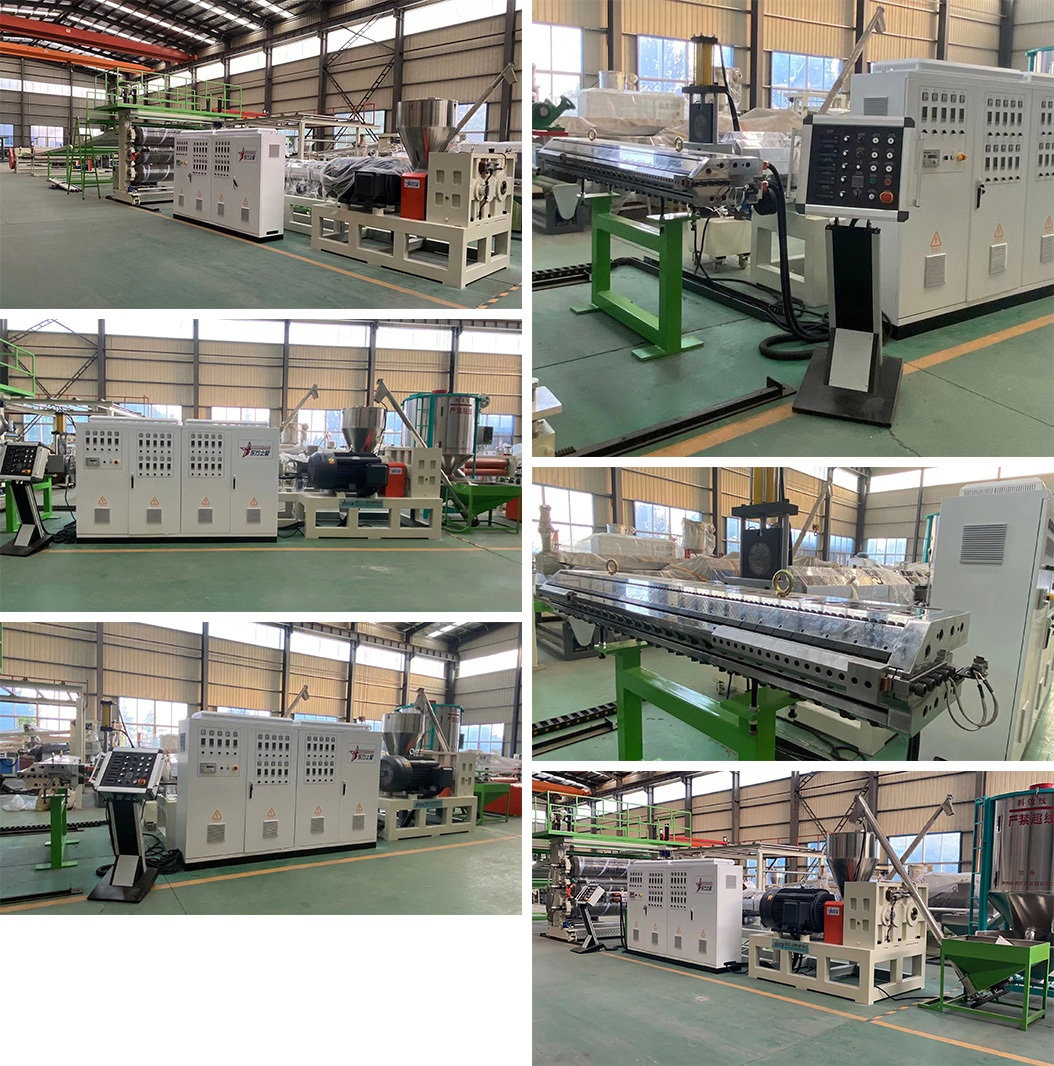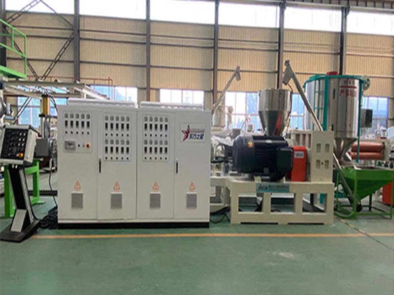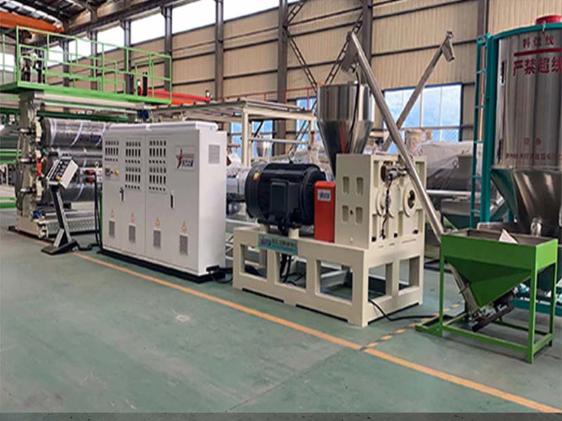 該生產(chǎn)線采SJ-150-35比1單螺桿排氣擠出機(jī)、西門子電機(jī)、高扭矩硬齒面減速機(jī)、液壓換網(wǎng)器、T型衣架式可調(diào)模具、立式三輥壓光機(jī)、并可根據(jù)客戶需求配備在線覆皮革裝置、三合一水溫機(jī)、不銹鋼冷卻托架裝并裝有寬幅可調(diào)切邊刀、橡膠輥牽引機(jī)、自動(dòng)定尺剪板機(jī)。生產(chǎn)線采用立體電控柜:日本歐姆龍智能溫控儀、西門子低壓電器、國內(nèi)外馳名變頻器。所生產(chǎn)的板材經(jīng)二次熱成型后,主要于汽車儀表板、車門內(nèi)裝板、代步車、高爾夫汽車等外殼;還可用于各種拉桿箱、行李箱等。
