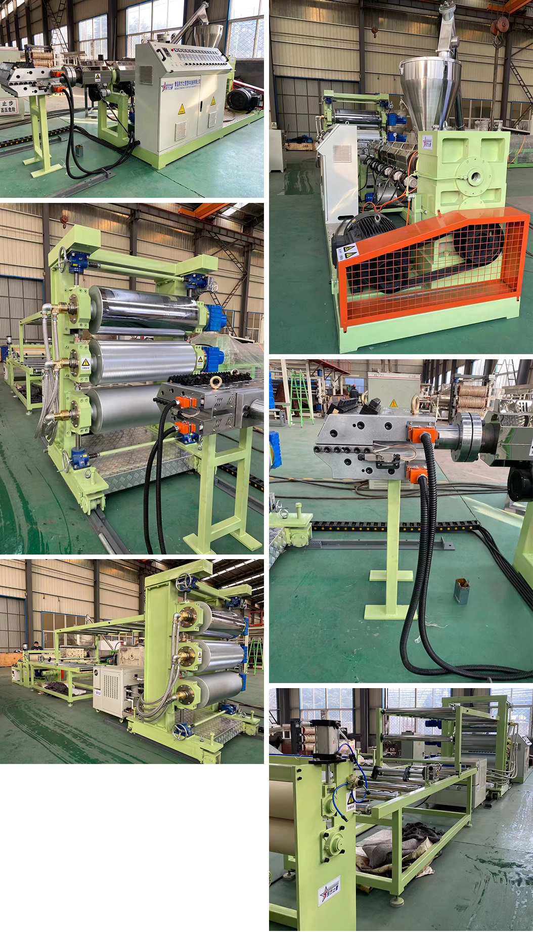 PP/PE/PS塑料片材生產(chǎn)設(shè)備:可生產(chǎn)寬度600-1200毫米、厚度0.5-2毫米的塑料卷材。